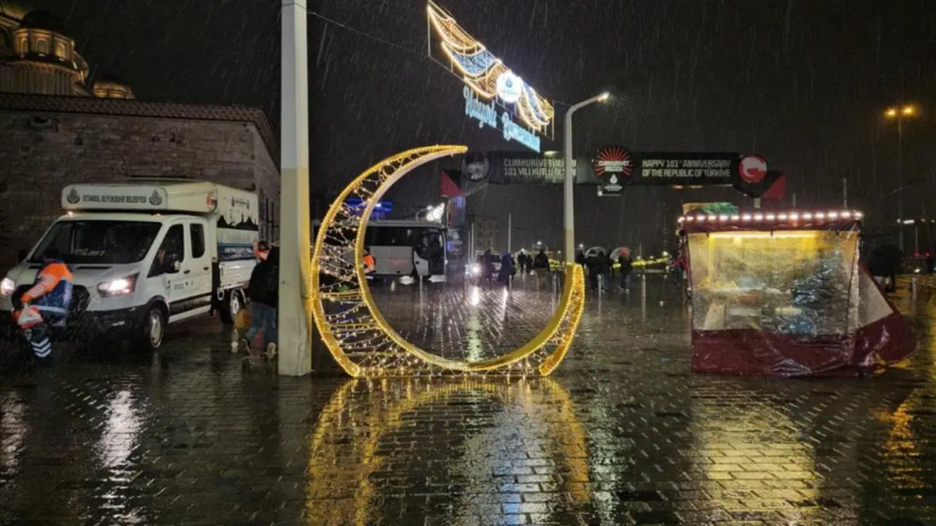 Meteoroloji’nin uyarıların ardından İstanbul genelinde beklenen yağış ve kuvvetli rüzgar, Beyoğlu ilçesindeki Taksim Meydanı ve İstiklal Caddesi’nde etkisini gösterdi.